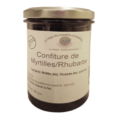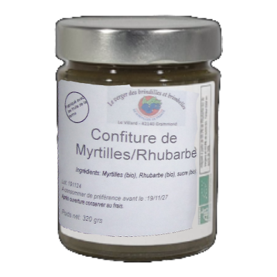 Ingrédients: Myrtilles(Bio),Rhubarbe(Bio) Sucre(Bio)